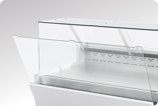 Переднее стекло вместе с фронтальной панелью легко откидывается, позволяя провести уборку внутреннего пространства легко и безопасно для персонала.